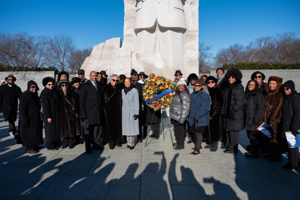 WASHINGTON, DC – Today, Senator Angela Alsobrooks (D-Md.) joined Harry E. Johnson Sr., President/CEO of the Memorial Foundation; Sean Burns, Thurgood Marshall College Fund/Alpha PAC; Georgette Dixon, Executive Vice President and Head of External Engagement Diverse Segments, Representation, and Inclusion, Wells Fargo and Company; Lucien J. Metellus, Jr., General President, Alpha Phi Alpha Fraternity, Inc.; Reverend Dr. Zina Pierre, Bethel Restoration Church, District Heights, Maryland; Rev. Dr. Grainger Browning Jr., Senior Pastor, Ebenezer African Methodist Episcopal Church, Fort Washington, Maryland; Minister Dr. Ricky Dillard; the Ebenezer African Methodist Episcopal Church Choir; and community members in laying a wreath at the Dr. Martin Luther King Jr. Memorial “Stone of Hope.”