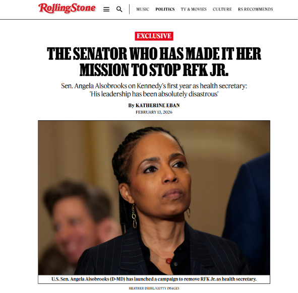 WASHINGTON, DC – In case you missed it, Rolling Stone marked one year of RFK Jr. in office by covering Senator Angela Alsobrooks’ (D-Md.) campaign to remove RFK Jr. as health secretary.